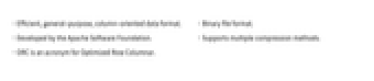 - The import format can be specified with Import["file","ORC"] or Import["file",{"ORC",elem,…}].