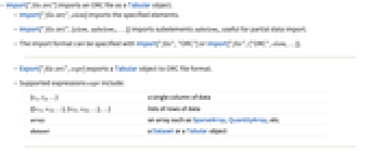 - Import["file.orc"] imports an ORC file as a Tabular object.
