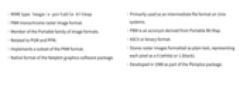 - PBM monochrome raster image format.