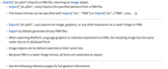 - Export["file.pbm",expr] exports an image, graphics, or any other expression as a raster image to PBM.