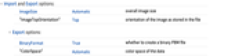 "Data" array of grayscale values "Graphics" Graphics object representing an image "Image" raster image, given as an Image object - Import and Export by default use the "Image" element for PBM files.