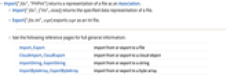 Import, Export import from or export to a file CloudImport, CloudExport import from or export to a cloud object ImportString, ExportString import from or export to a string ImportByteArray, ExportByteArray import from or export to a byte array