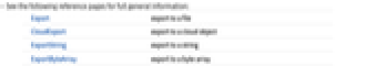 Export export to a file CloudExport export to a cloud object ExportString export to a string ExportByteArray export to a byte array