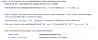- Import["file.ply"] imports a PLY file as a MeshRegion object representing the surface.