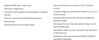 - Developed in 1995 as an open and patent-free alternative to the GIF format.