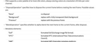 "None" no disposal "Background" replace with a fully transparent black background "Previous" replace with the previous frame - "BlendOperation" specifies whether to alpha blend the next frame to the current frame, after disposal.