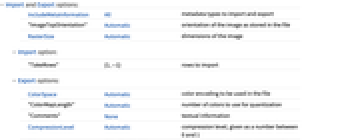 IncludeMetaInformation All metadata types to import and export "ImageTopOrientation" Automatic orientation of the image as stored in the file RasterSize Automatic dimensions of the image - Import option: