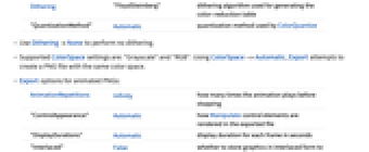 AnimationRepetitions Infinity how many times the animation plays before stopping "ControlAppearance" Automatic how Manipulate control elements are rendered in the exported file "DisplayDurations" Automatic display duration for each frame in seconds "Interlaced" False whether to store graphics in interlaced form to allow progressive rendering "RemoveDuplicatedFrames" False whether to remove duplicated frames - The following settings can be given for "ControlAppearance":