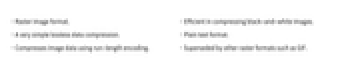 - Efficient in compressing black-and-white images.