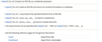 - Import["file.rss"] imports an RSS file as a notebook expression.