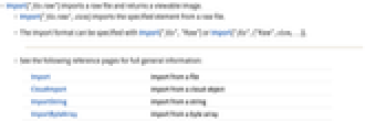Import import from a file CloudImport import from a cloud object ImportString import from a string ImportByteArray import from a byte array