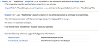 - Import["file","RawBitmap",ImageSize->{w,h}] imports a raw bitmap file and returns an Image object.