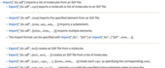 - Import["file.sdf"] imports a list of molecules from an SDF file.