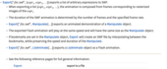 - If bookmarks are set in the Manipulate object, Export will create an SWF file by interpolating between the bookmarks, while preserving the speed and duration of the Manipulate.
