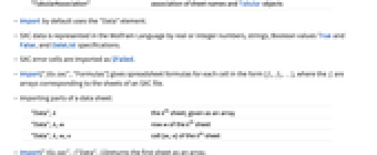 "Dimensions" association of sheet names and sheet dimensions "SheetCount" number of sheets "Sheets" list of sheet names - Data representation elements:
