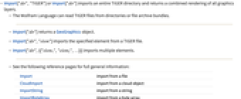 Import import from a file CloudImport import from a cloud object ImportString import from a string ImportByteArray import from a byte array