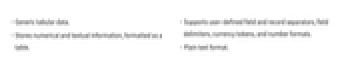 - Supports user-defined field and record separators, field delimiters, currency tokens, and number formats.