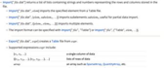 - Import["file.dat",elem] imports the specified element from a Table file.