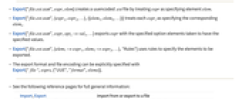 - Export["file.ext.uue",{expr1,expr2,…},{{elem1,elem2,…}}] treats each expri as specifying the corresponding elemi.