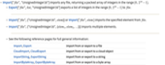 Import, Export import from or export to a file CloudImport, CloudExport import from or export to a cloud object ImportString, ExportString import from or export to a string ImportByteArray, ExportByteArray import from or export to a byte array