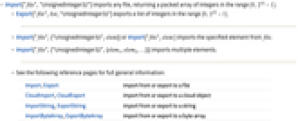 Import, Export import from or export to a file CloudImport, CloudExport import from or export to a cloud object ImportString, ExportString import from or export to a string ImportByteArray, ExportByteArray import from or export to a byte array