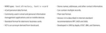- Version 3.0 is described in internet standard recommendations RFC 2425 and 2426.