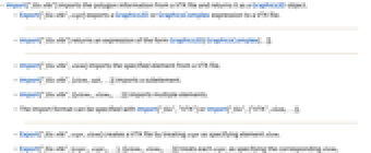 - Import["file.vtk"] imports the polygon information from a VTK file and returns it as a Graphics3D object.