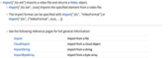 - The import format can be specified with Import["file","VideoFormat"] or Import["file",{"VideoFormat",elem,…}].