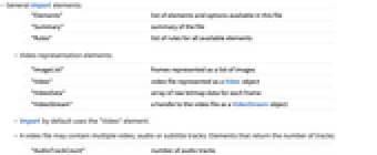 "Elements" list of elements and options available in this file "Summary" summary of the file "Rules" list of rules for all available elements - Video representation elements: