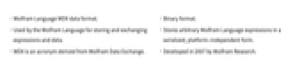 - Used by the Wolfram Language for storing and exchanging expressions and data.