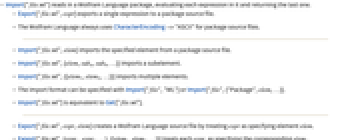 - Import["file.wl",elem] imports the specified element from a package source file.