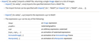- Import["file.webp",elem] imports the specified element from a WebP file.