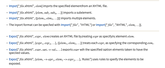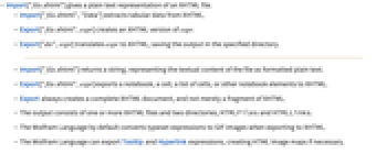 - Import["file.xhtml",elem] imports the specified element from an XHTML file.