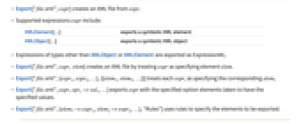 XMLElement[…] exports a symbolic XML element XMLObject[…] exports a symbolic XML object - Expressions of types other than XMLObject or XMLElement are exported as ExpressionML.
