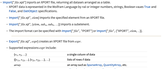 - Import["file.xpt",elem] imports the specified element from an XPORT file.