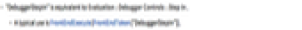 - "DebuggerStepIn" is equivalent to Evaluation ▶ Debugger Controls ▶ Step In.