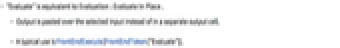 - "Evaluate" is equivalent to Evaluation ▶ Evaluate In Place.