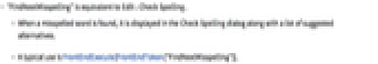 - "FindNextMisspelling" is equivalent to Edit ▶ Check Spelling.