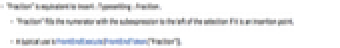 - "Fraction" fills the numerator with the subexpression to the left of the selection if it is an insertion point.