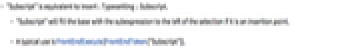 - "Subscript" is equivalent to Insert ▶ Typesetting ▶ Subscript.