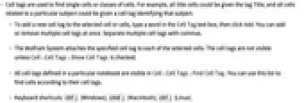 - Cell tags are used to find single cells or classes of cells. For example, all title cells could be given the tag Title, and all cells related to a particular subject could be given a cell tag identifying that subject.
