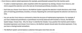 - Each time you choose Check Balance, the Wolfram System expands the selection in both directions until it finds pairs of matching parentheses, brackets, or braces. Repeating the command expands the selection one level at a time.