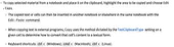 - The copied text or cells can then be inserted in another notebook or elsewhere in the same notebook with the Edit ▶ Paste command.