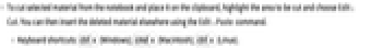 To cut selected material from the notebook and place it on the clipboard, highlight the area to be cut and choose Edit▶Cut. You can then insert the deleted material elsewhere using the Edit▶Paste command.