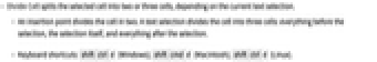- An insertion point divides the cell in two. A text selection divides the cell into three cells: everything before the selection, the selection itself, and everything after the selection.