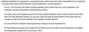 - Notebook stylesheets are organized in a cascading structure, which means that certain style definitions for a stylesheet are unique while others are inherited from its base stylesheet (or "shared stylesheet.")