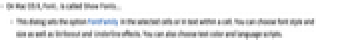 - This dialog sets the option FontFamily in the selected cells or in text within a cell. You can choose font style and size as well as Strikeout and Underline effects. You can also choose text color and language scripts.