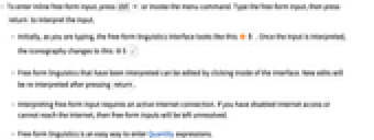 . - Interpreting free-form input requires an active Internet connection. If you have disabled Internet access or cannot reach the Internet, then free-form inputs will be left unresolved.