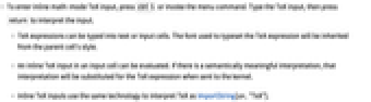 to interpret the input. - TeX expressions can be typed into text or input cells. The font used to typeset the TeX expression will be inherited from the parent cell's style.