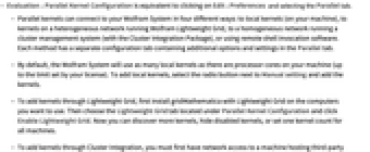- Evaluation ▶ Parallel Kernel Configuration is equivalent to clicking on Edit ▶ Preferences and selecting the Parallel tab.